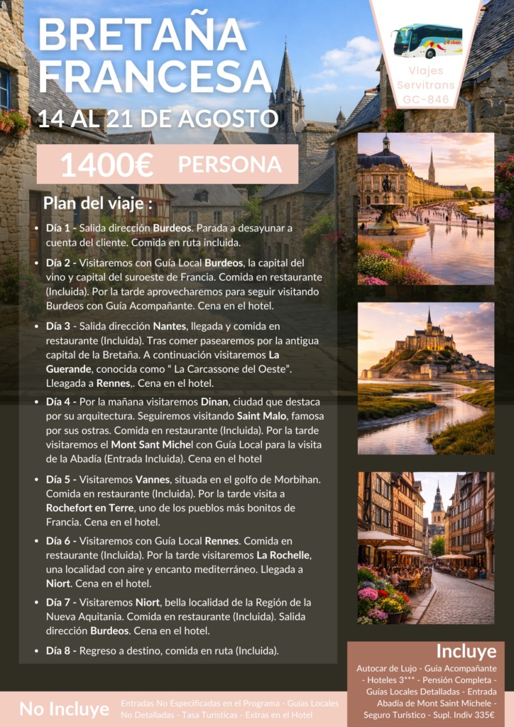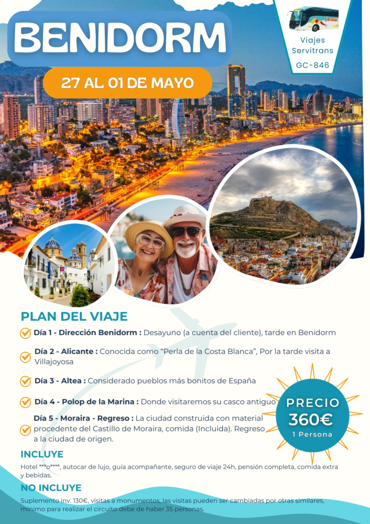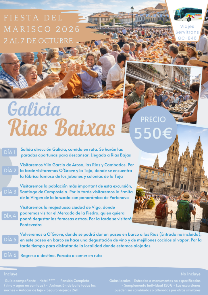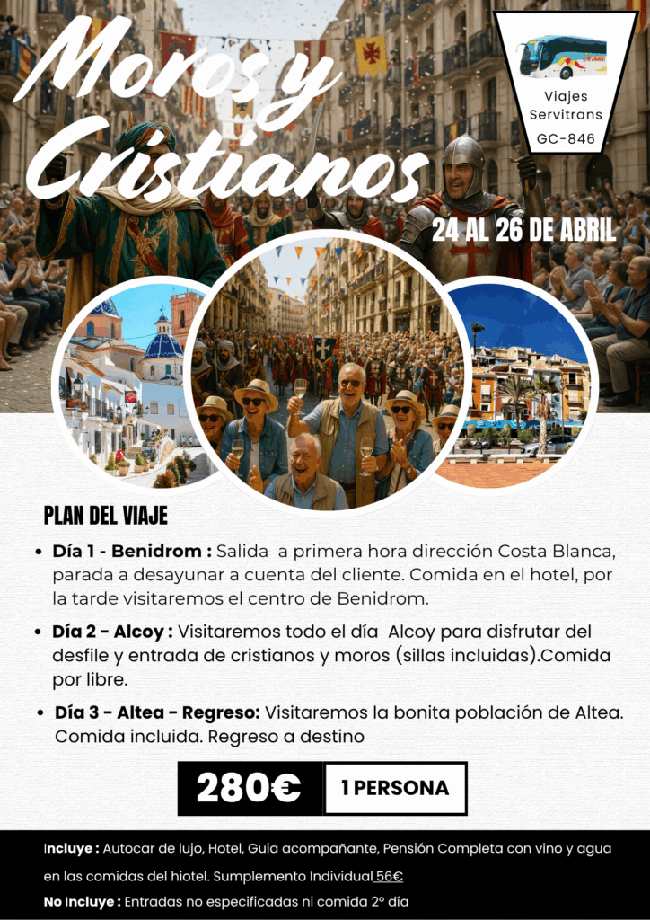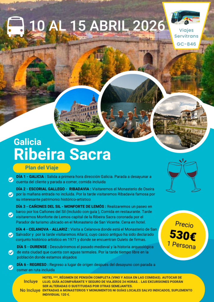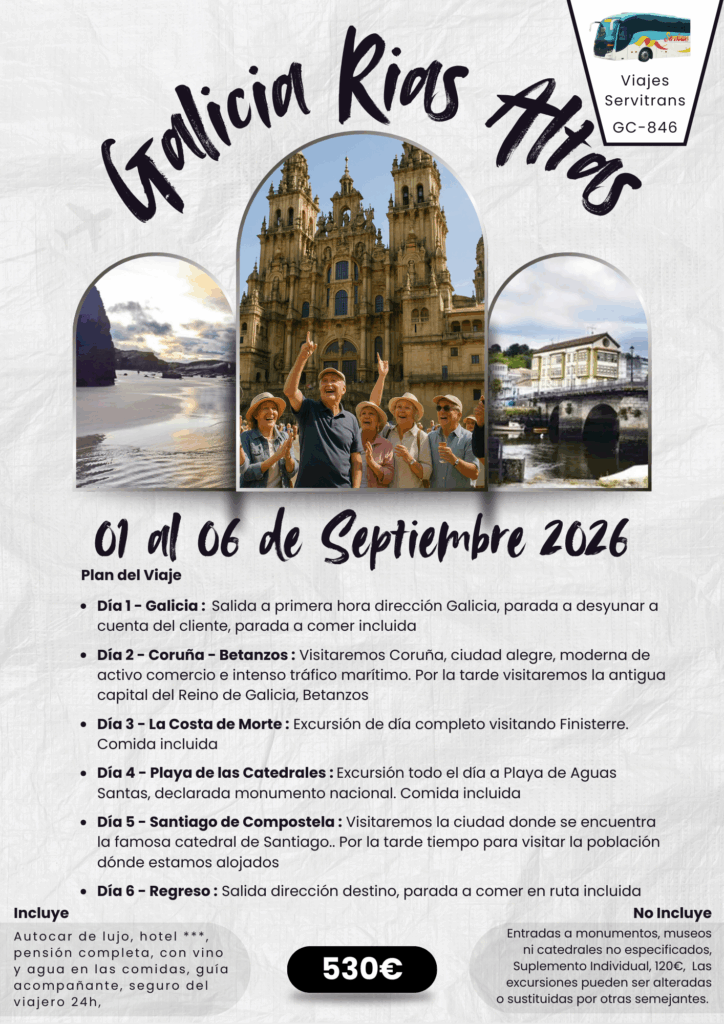 En Viajes Servitrans organizamos excursiones y escapadas para que disfrutes del camino y el destino. Cuidamos cada detalle para que tu única preocupación sea pasarlo bien. Cultura, gastronomía, naturaleza… tú eliges la experiencia, nosotros te llevamos